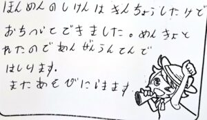 卒業生の声(2025年10月12日卒業)※ベトナムの方 合格おめでとうございます! ほんめんのしけんはきんちょうしたけど、おちついてできました。 めんきょとれたので、あんぜんうんてんではしります。 またあそびにいきます!