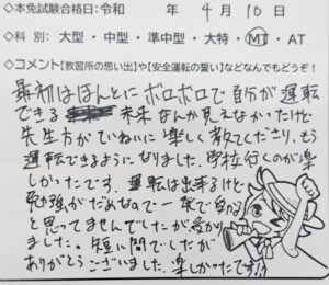 最初はほんとにボロボロで自分が運転できる未来なんか見えなかったけど、先生方が丁寧に楽しく教えてくださり、