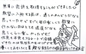仮免も本免もストレートで合格できたのは先生方のおかげです!